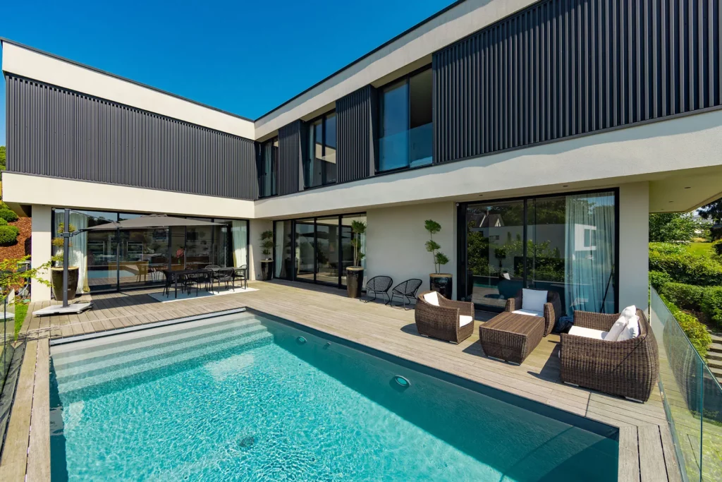 Harmonie architecturale avec une construction de maison contemporaine et d’une piscine exterieure