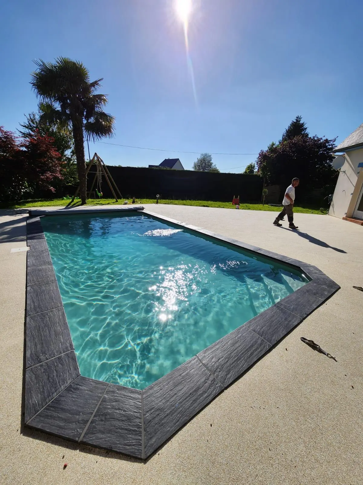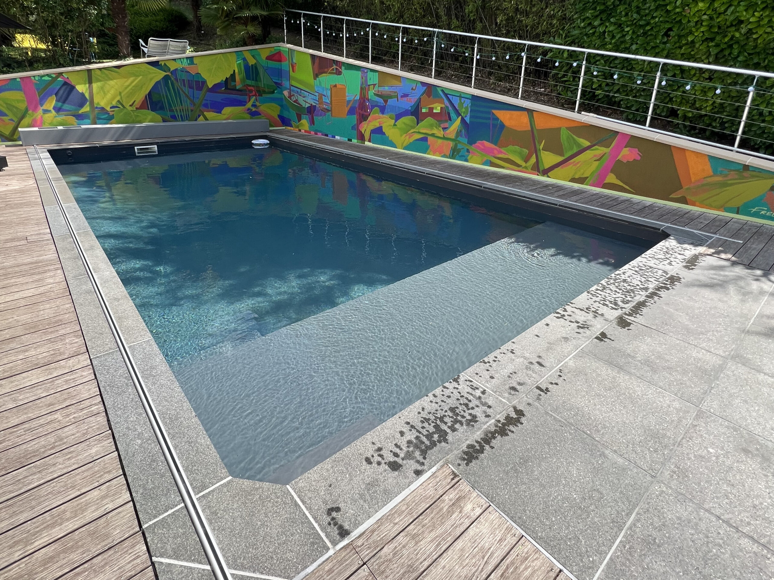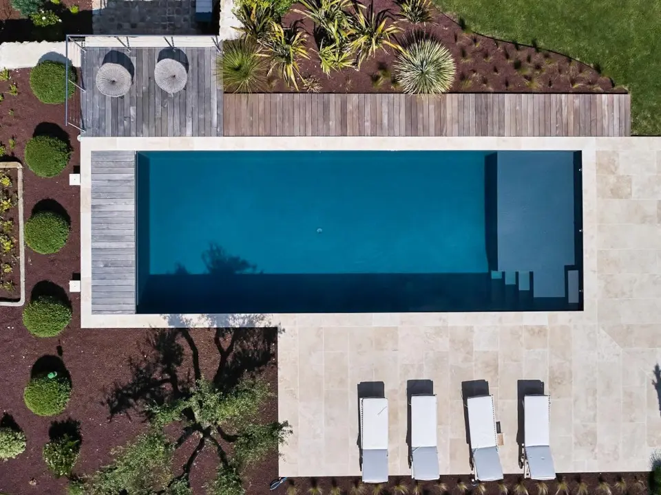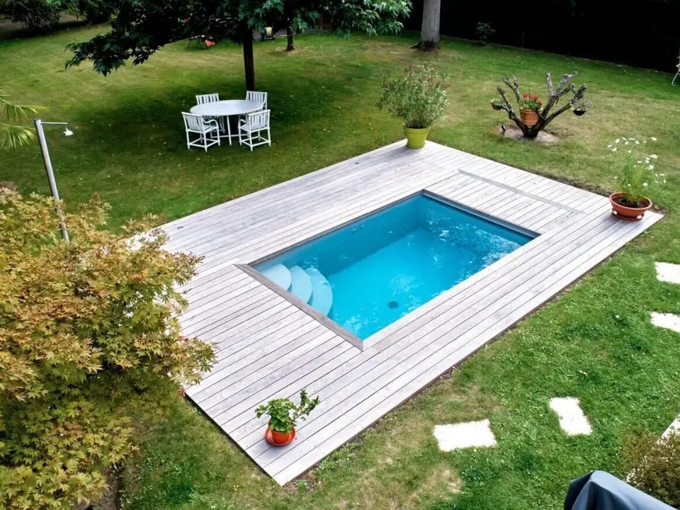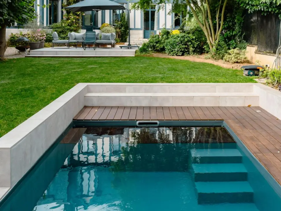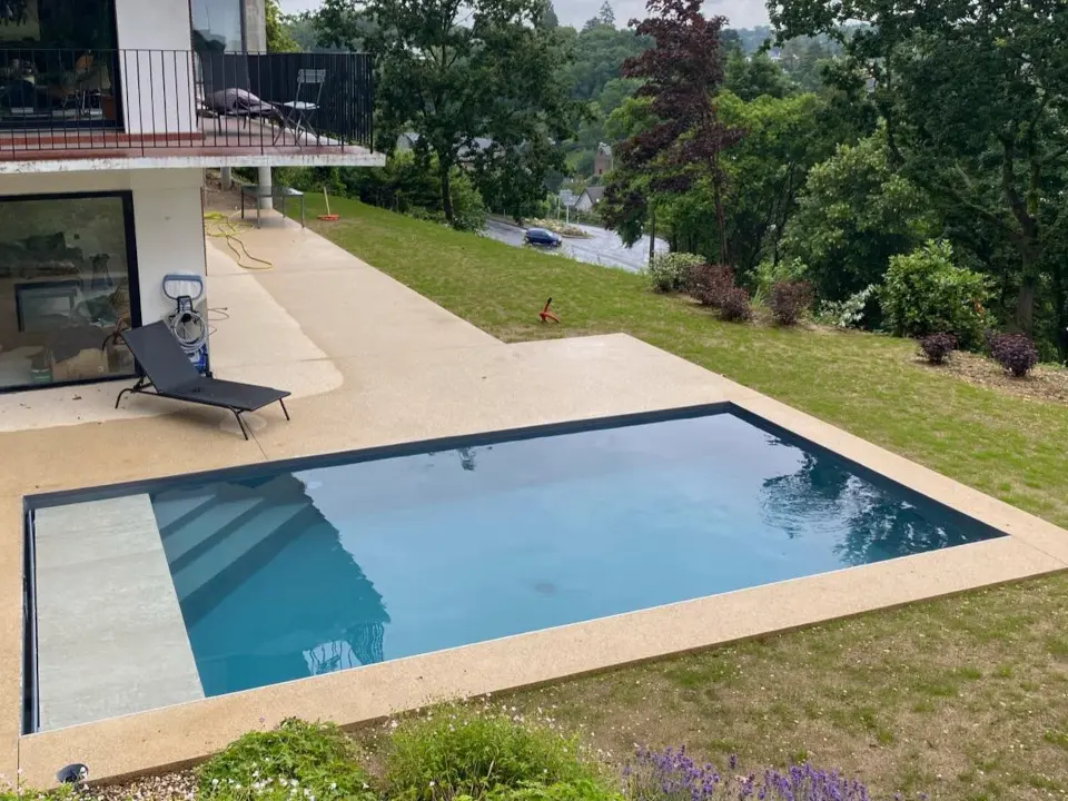 • Options de finition : Vous pouvez choisir un revêtement en pierre naturelle, carrelage, liner couleur, ou béton ciré, pour un style résolument moderne ou plus rustique.