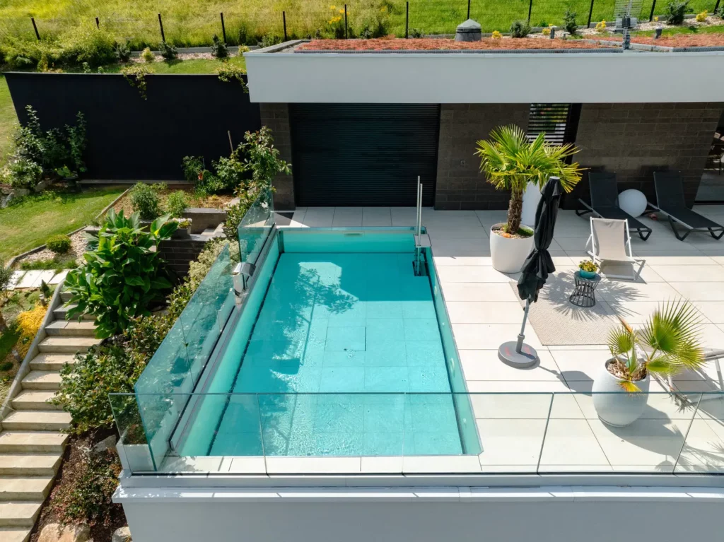 Une piscine avec fond mobile en ville !