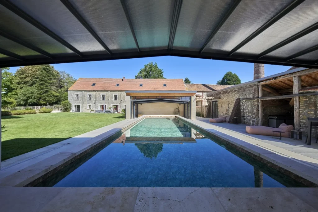 Piscine toute équipée au cœur d’un majestueux gîte.